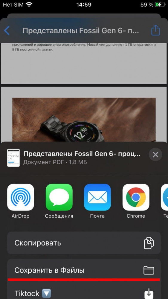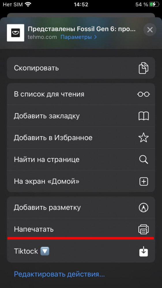 В желаемом браузере выбираем Поделиться — Напечатать. Если в открывшемся меню вы его не находите, кликните по “Редактировать действия” и добавьте пункт в основное меню. Теперь логично было бы кликнуть по пункту “Принтер”, однако на iOS нам это не подойдет. Вместо этого нужно удерживать превью страницы долгим тапом и еще раз коснуться дисплея, когда страница откроется в полноэкранном режиме. В этом меню вам снова будет доступна кнопка “Поделиться”, однако уже с другими пунктами. Нас интересует строка “Сохранить в файлы”. После этого созданный документ будет доступен в приложении “Файлы”.