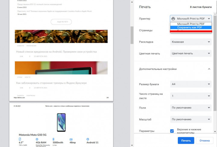 Как сохранить веб-страницу в виде PDF на iOS, Android и Windows