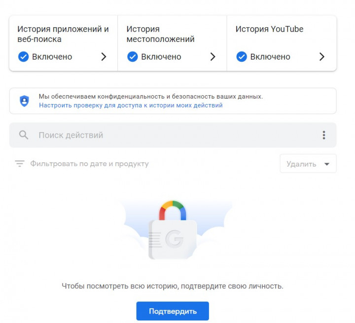 Прежде чем мы начнем, давайте уточним: ваши действия в Google включают не только историю поиска, то также все действия в приложениях от Google (Gmail, YouTube, YouTube Music, Google Play и других), просмотр рекомендаций в Google Discover, обращения к приложениям на Android-смартфоне/планшете, историю местоположений и посещенные сайты, то есть, довольно приличный объем информации.