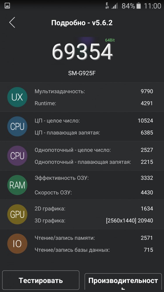 Начинка полностью аналогична S6 — восьмиядерный 64-битный Exynos 7420(Cortex-A53 с частотой 1,5 ГГц и Cortex-A57 с частотой 2,1 ГГц), видеоядро Mali-T760 и 3 Гб оперативной памяти. Величина встроенного накопителя может составлять 32, 64 или 128 Гб. Самым жадным сразу стоит выбирать самый большой по емкости вариант, так как место по карту памяти здесь нет. Результаты бенчмарков просто поражают воображение и это не пустые цифры: здесь все действительно работает быстро и плавно. Скорее всего, бы вообще не сможете нагрузить смартфон до такой степени, чтобы он задумался: под этой изящной внешностью прячется настоящий зверь.